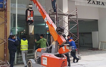 На этот раз мини-кранами JEKKO и вакуумными захватами ARLIFT были смонтированы витрины магазинов в торговом центре МЕГА в Республике Казахстан.