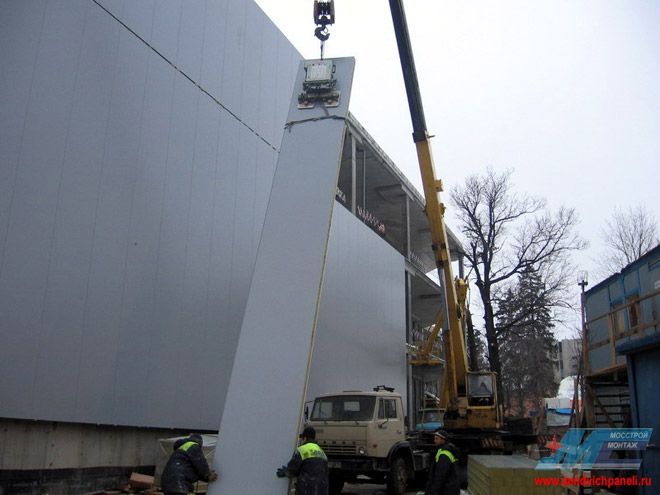 Торговый центр в Одинцово - Москва - Вертикальный монтаж стеновых сэндвич-панелей до 12 м - Clad Boy 2
