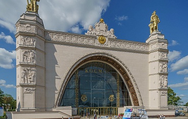 Монтаж ракеты восток и мультимедийного шара в комплексе «Космос» ВДНХ в Москве