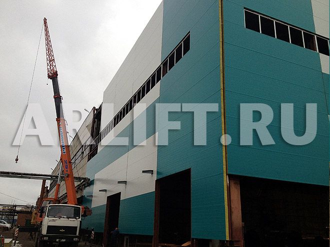 Наши объекты - Выксунский металлургический завод - горизонтальный монтаж стеновых сэндвич-панелей - Нижний Новгород