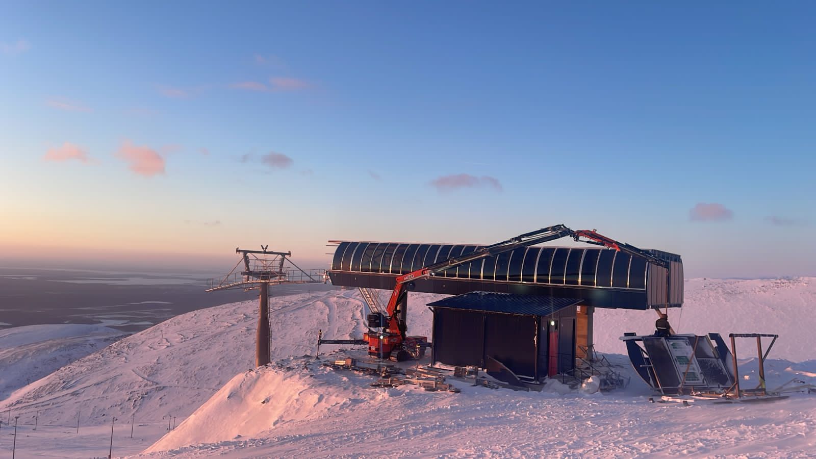 Готовых трасс не было, и техника не могла добраться до объекта своим ходом. Поэтому мы разработали логистику специально для клиента: кран к месту работ затягивали по заснеженному склону канатами. Такой подход позволил начать монтаж без потери времени на строительство временных путей.