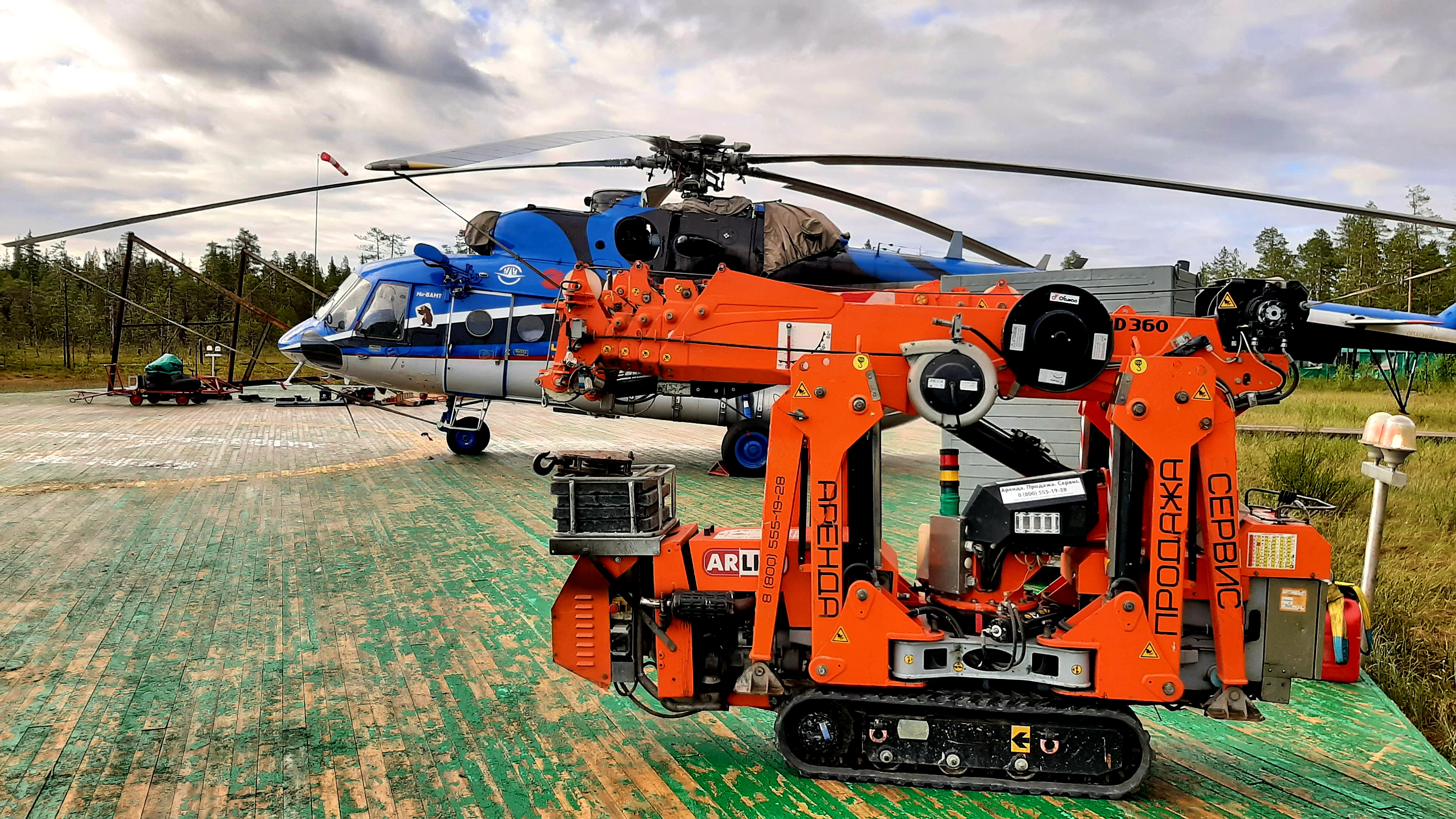 Мини-кран SPD360CDH и опытный оператор ARLIFT отправились на объект на втором вертолёте. Небольшие габариты крана позволили загрузить его бортом и доставить прямо к точке ремонта — в северные леса Кольского полуострова.
