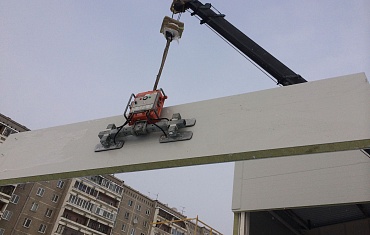 Монтаж стеновых сэндвич-панелей с помощью вакуумных захватов