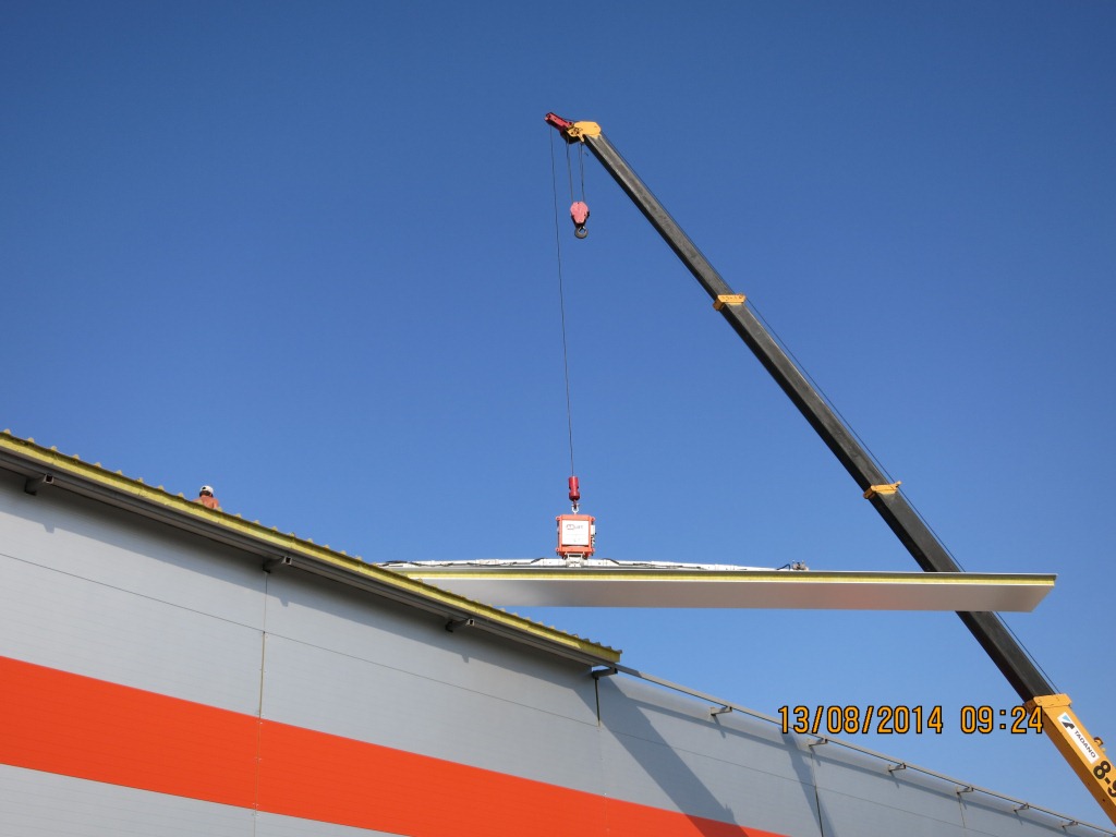 Монтаж 13-ти метровых кровельных сэндвич-панелей с помощью вакуумных захватов ARLIFTER SP-3 и ARLIFTER SP-4.