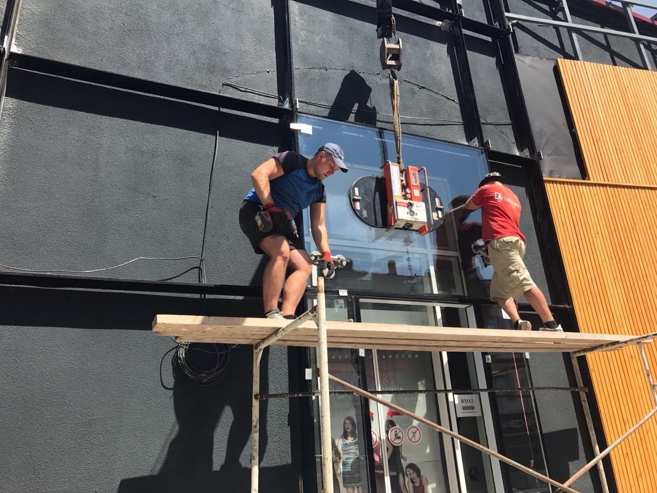 Монтаж крупногабаритного стекла для кинотеатра "Большой"