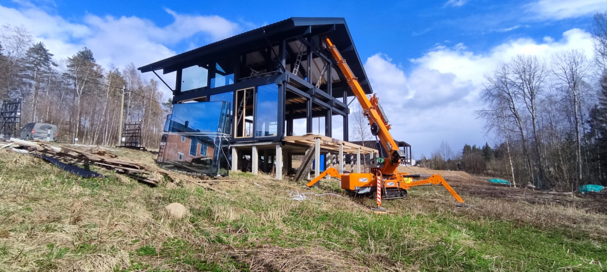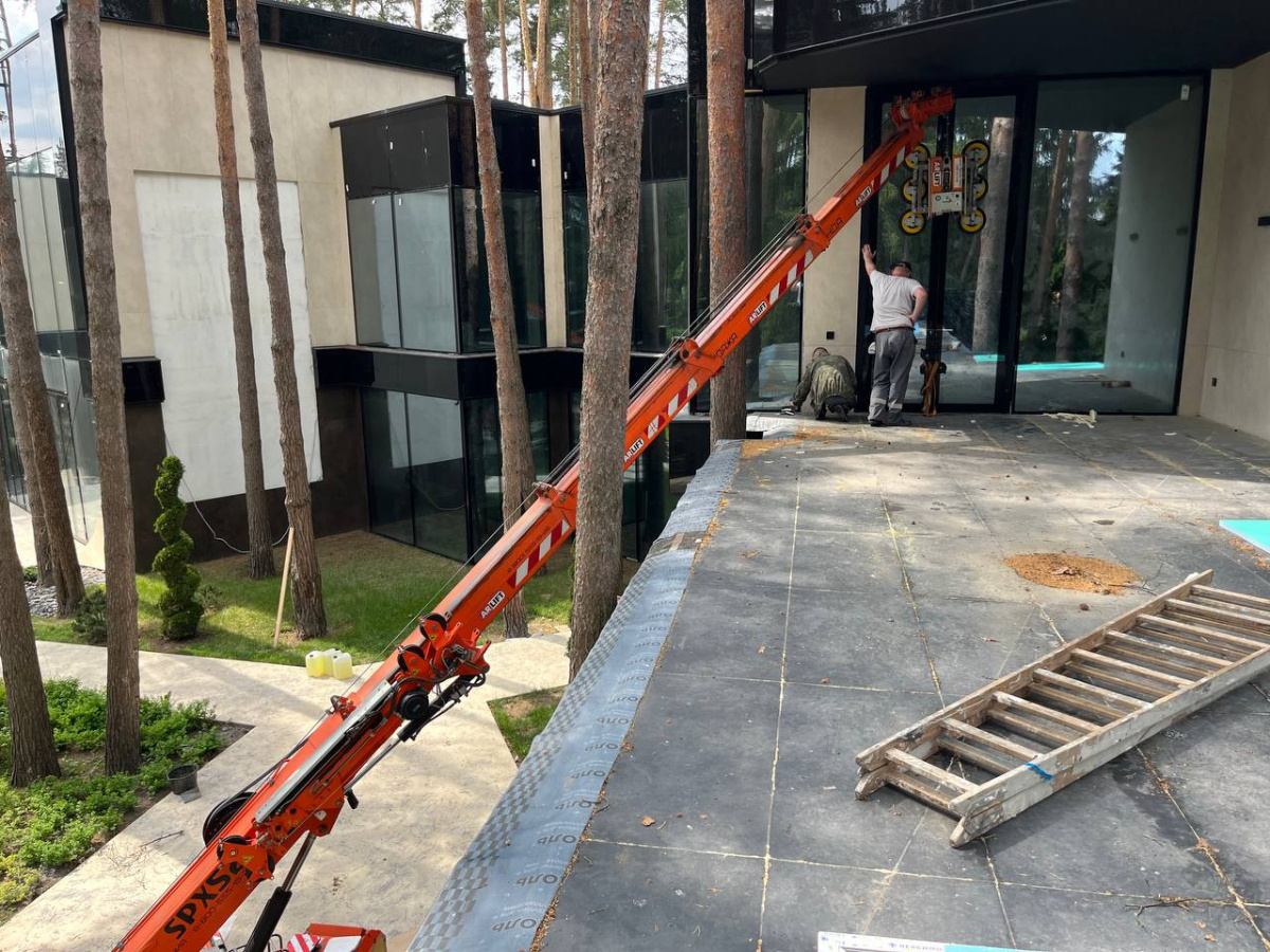 Остекление с помощью вакуумного захвата и стеклоробота Арлифт
