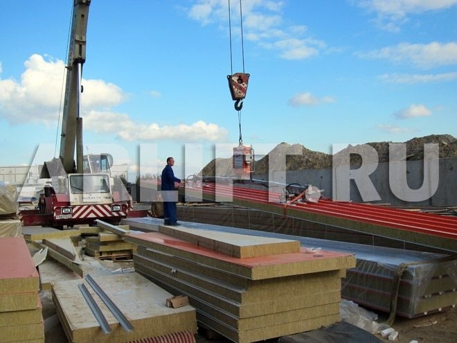 Для строительства склада использовались кровельные панели длиной до 13 м и весом 330 кг. Перед началом работ предполагалось, что монтаж одной панели займет в среднем 20-25 минут, но вакуумный захват превзошел все ожидания, и фактическое время монтажа составило всего 5 минут.