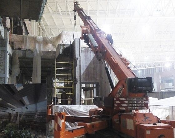 Вторым ноябрьским МЕГА проектом стало участие в строительстве нового фуд-корта в торговом центре МЕГА Химки в городе Москва. На этом объекте в очередной раз продемонстрировал свою мощь наш сверхтехнологичный мини-кран JEKKO SPX1040.